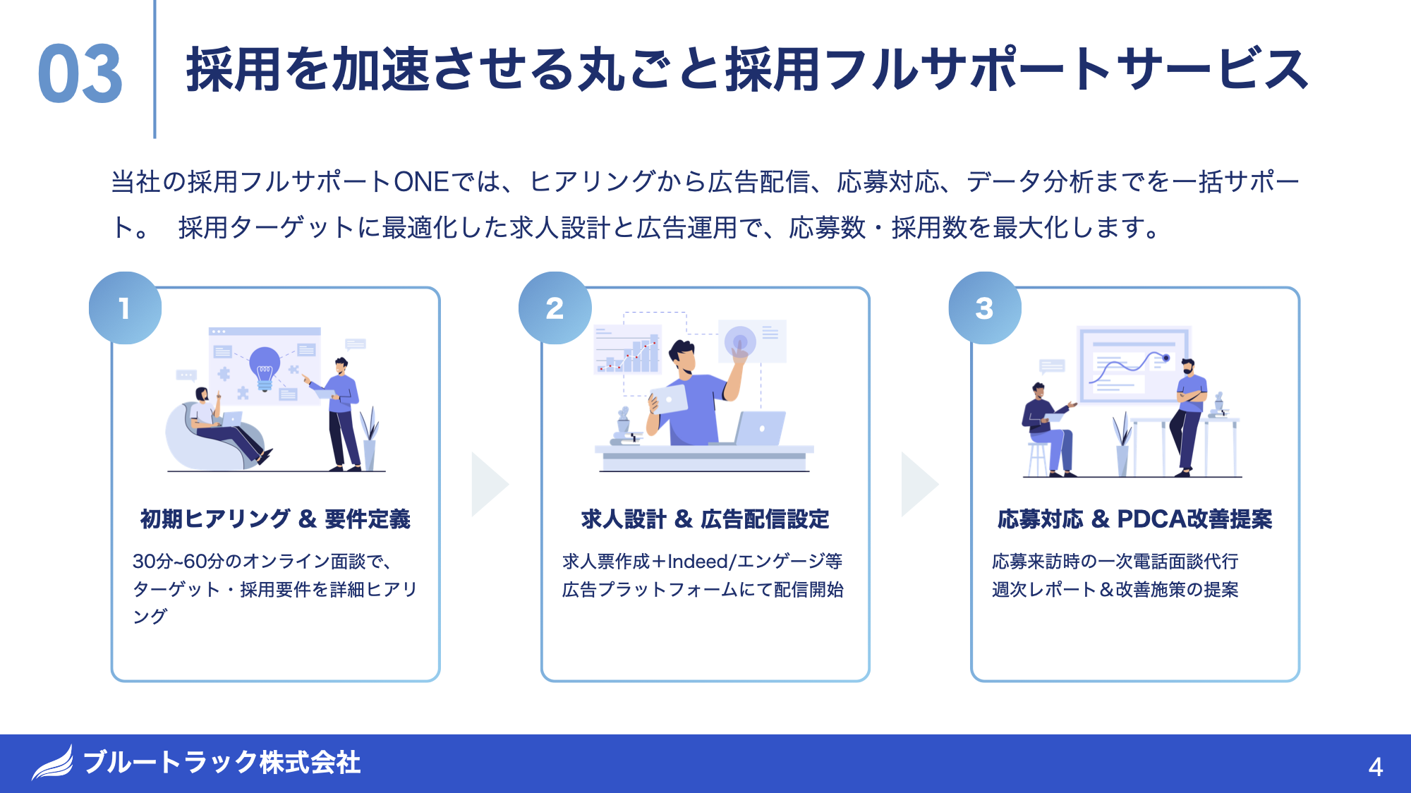 採用戦略の立案から実行まで、採用業務をトータルでサポートする包括的な採用支援サービスです。 企業の採用課題を解決し、最適な人材獲得を実現します。